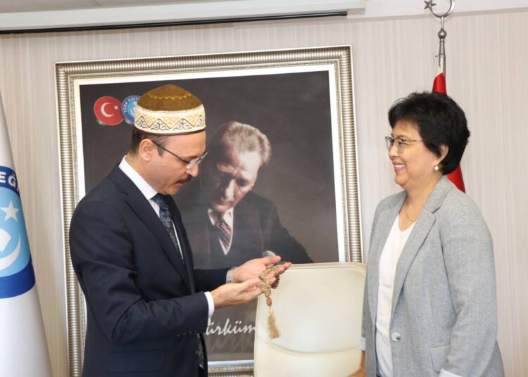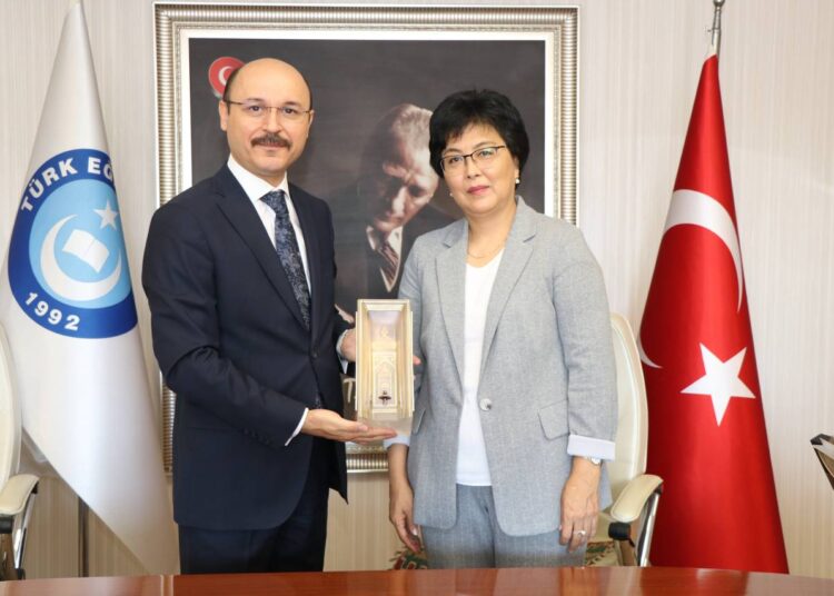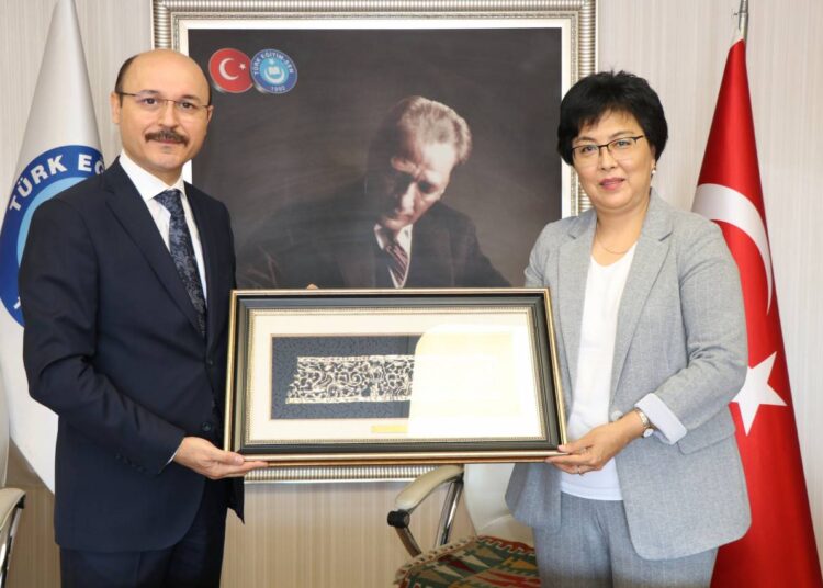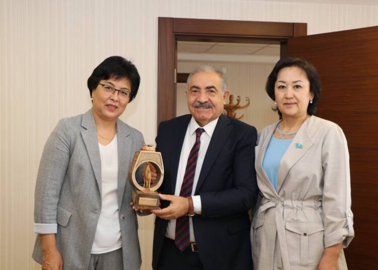 Kazakistan Eğitim ve Bilim Çalışanları Sendikası Genel Başkanı Aygül Mukaşeva ile Almatı, Türkistan ve Kızılordu Bölge Başkanlarından oluşan bir heyet Türk Eğitim-Sen ve Uluslararası Avrasya Eğitim Sendikaları Birliği Genel Başkanı Talip Geylan’ı ziyaret etti. Ziyaret kapsamında, Türk Eğitim-Sen Genel Başkan Yardımcıları Seyit Ali Kaplan ve Cengiz Kocakaplan da hazır bulundu.