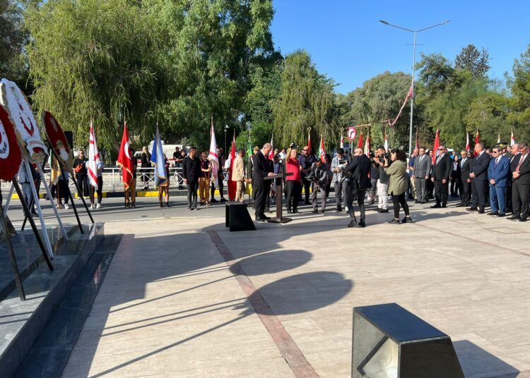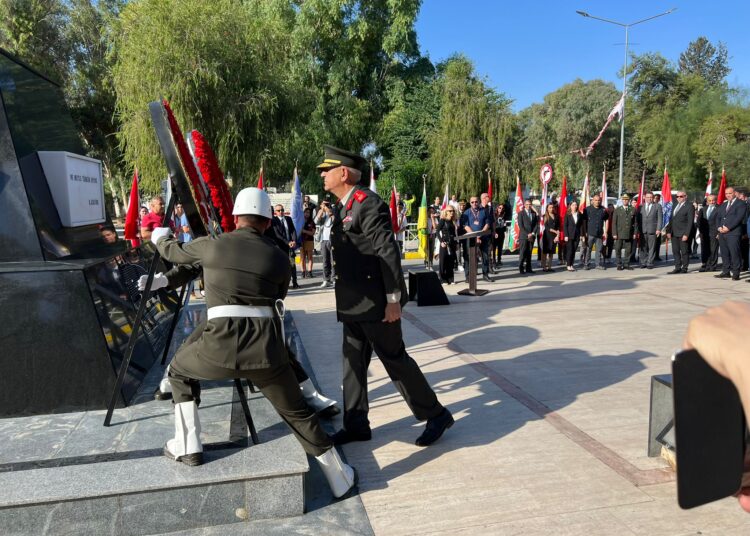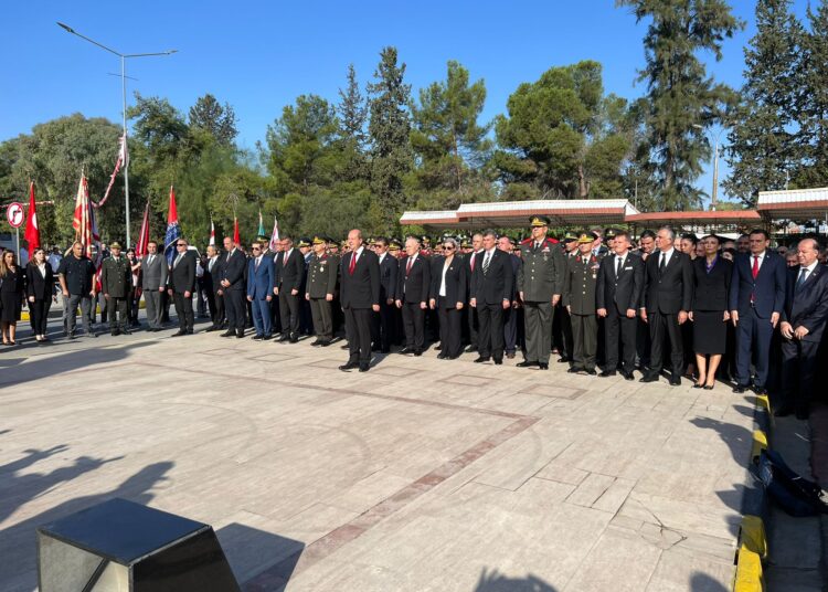 Atatürk Anıtı önünde yapılan ve KKTC Cumhurbaşkanı Ersin Tatar’ın himayesinde gerçekleştirilen devlet töreninde protokol sırasına göre anıta çelenkler sunuldu. 09.05’te saygı duruşu ve İstiklal Marşı eşliğinde bayrakların yarıya indirilmesinin ardından Anıt Özel Defteri imzalandı.