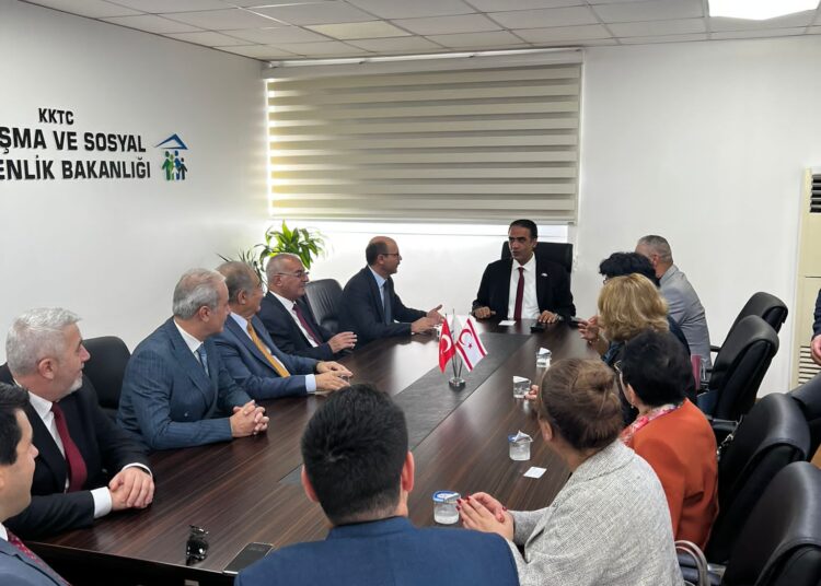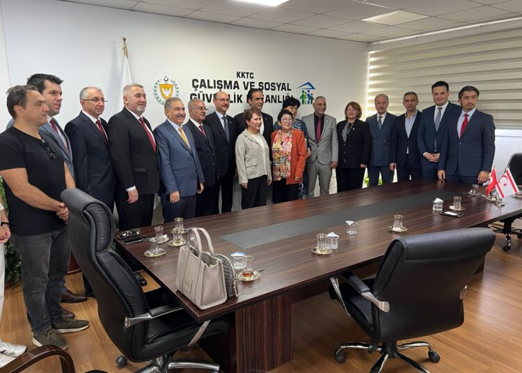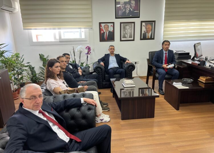 Türk Eğitim-Sen ve UAESEB Heyeti daha sonra KKTC Çalışma ve Sosyal Güvenlik Bakanı Sadık Gardiyanoğlu’nu makamında ziyaret etti. Türk Eğitim-Sen ve UAESEB Genel Başkanı Talip Geylan, Sayın Bakan’a nazik kabulleri dolayısıyla teşekkürlerini sundu.