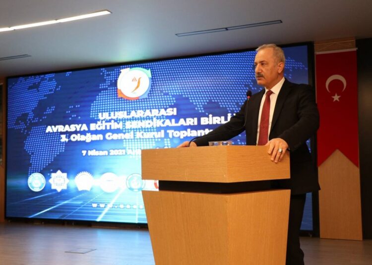 Uluslararası Avrasya Eğitim Sendikaları Birliği’nin 3’üncü Olağan Genel Kurul Toplantısı 7 Nisan 2021 tarihinde Ankara’da yapıldı. Pandemi dolayısıyla sınırlı sayıda katılımcının hazır bulunduğu kongreye, birliğe üye ülkelerin temsilcileri de çevirim içi bağlandı.